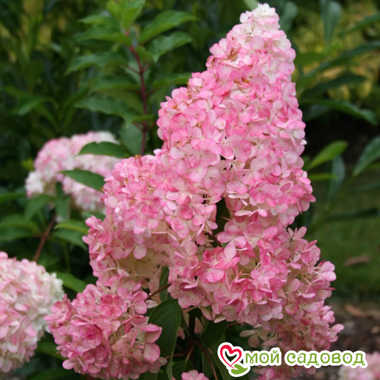 Читать далееСтремительно и мгновенно завоевал сердца садоводов-любителей и ландшафтных дизайнеров. Это один из немногих сортов, который не нуждается в рекламе. Довольно высокорослый сорт, достигает 2 и более метров в высоту, с прямостоячими, жесткими побегами. Характерной особенностью этого сорта являются побеги интенсивно окрашенные в красный цвет. Листья темно-зеленые, сидят на черешках ярко-красного цвета, что придает особую декоративность. Обладает огромными, плотными соцветиями широкопирамидальной формы, с нижними боковыми выступами. На хорошем агрофоне высота конуса иногда достигает 40-50 см. Цветы расположены по всему объему куста очень густым каскадом, сначала молочно-белые, затем нежнейшего розового оттенка, к концу цветения становятся насыщенно красными, почти вишневыми. Чувствителен к обрезке: величина соцветий сильно зависит от длины оставленных побегов.